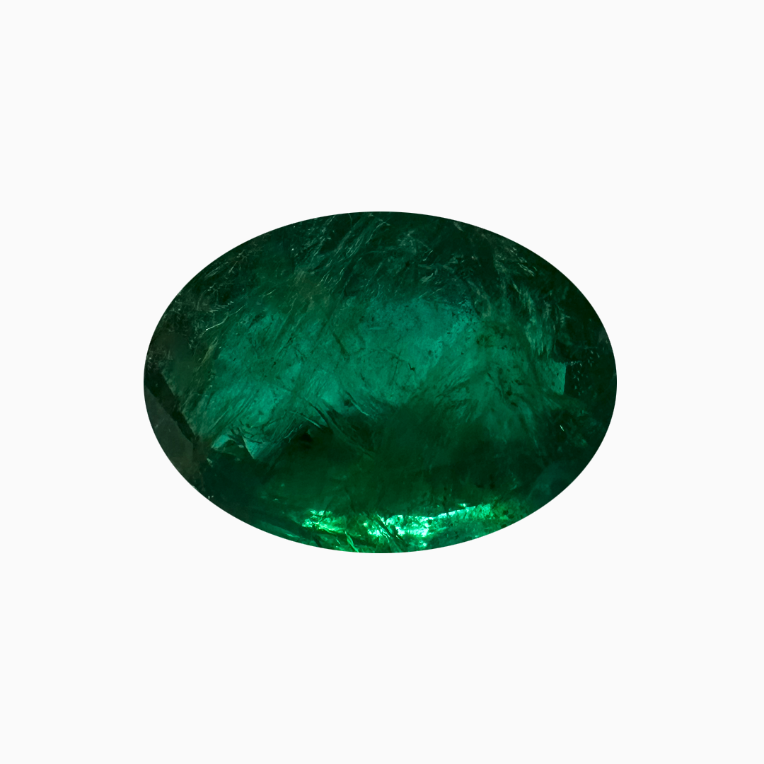 Radiating a vibrant green luster, this 1.5-carat oval-shaped emerald from Zambia is a gem of exceptional beauty. The oval cut enhances its rich color and clarity, allowing light to flow seamlessly through its facets for a captivating sparkle. This exquisite emerald, with its timeless elegance and luxurious allure, is an ideal choice for any sophisticated jewelry piece.