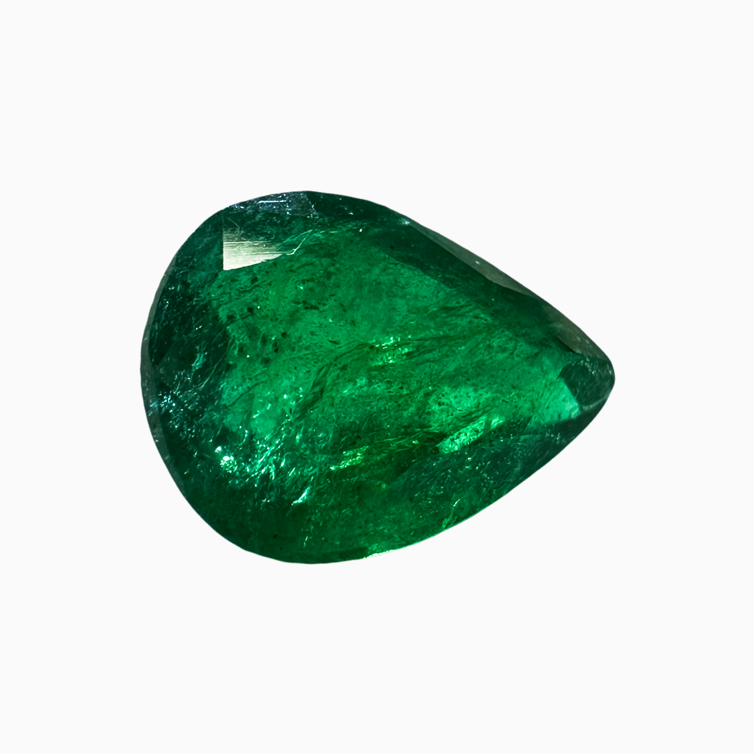 Glistening with an enchanting green radiance, this 2.39-carat pear-shaped emerald from Zambia is a masterpiece of natural beauty. The pear cut accentuates its vibrant hue and exceptional clarity, creating a mesmerizing dance of light and color. This exquisite gem, with its graceful silhouette and luxurious allure, is destined to elevate any jewelry design to new heights of elegance.